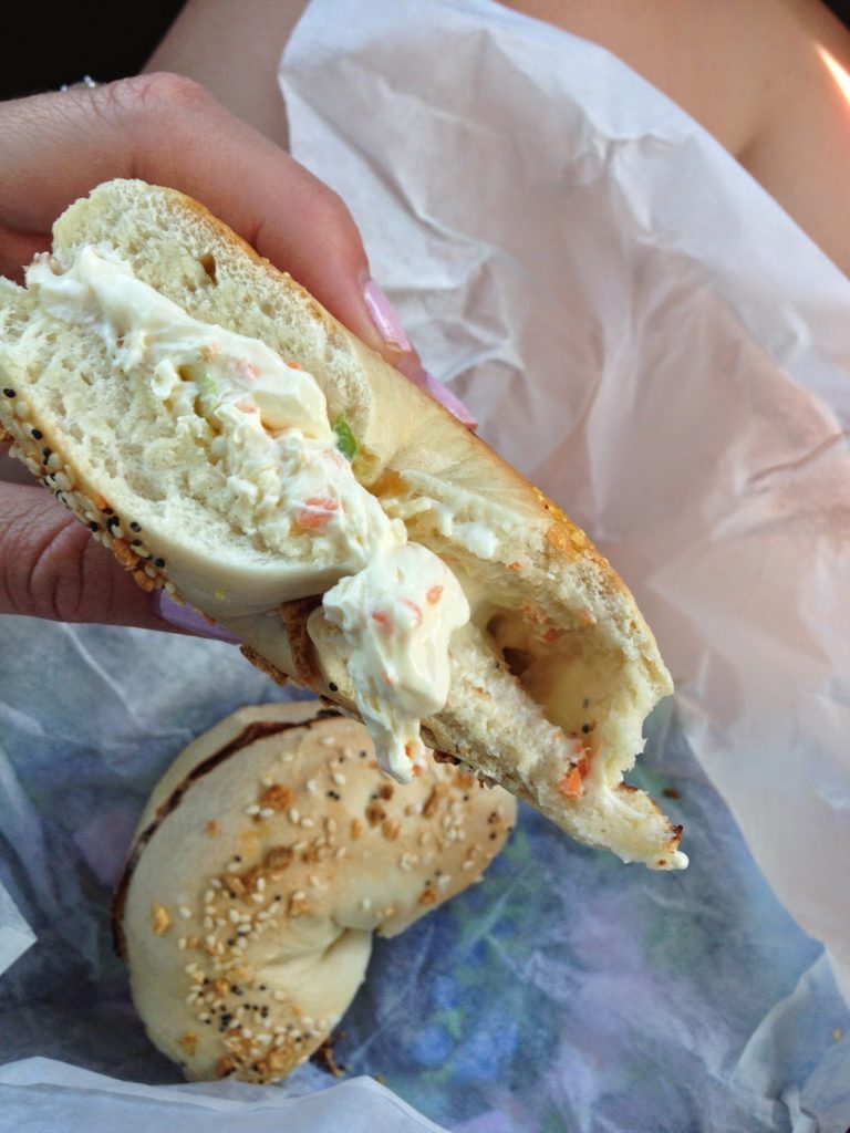 We both opted for our favorite everything bagel, but I got the veggie cream cheese and Ryan got the lox!